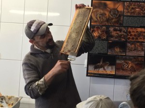 Il nous a expliqué en quoi consiste les différents produits issus des abeilles : miel, cire, gelée royale, propolis.