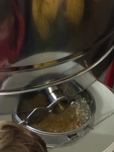Nous nous sommes ensuite rendus dans la miellerie, pour voir comment est récolté le miel. Nous avons pu goûter des « chewing-gum » au miel, en enrobant de petits morceaux de cire avec du miel et en les suçant.